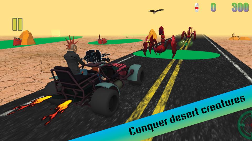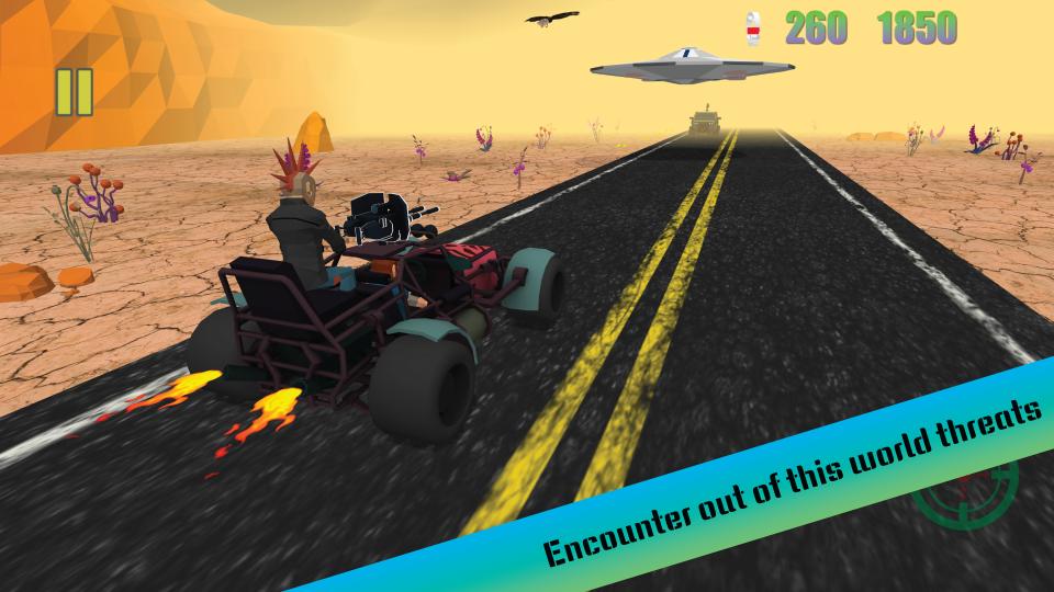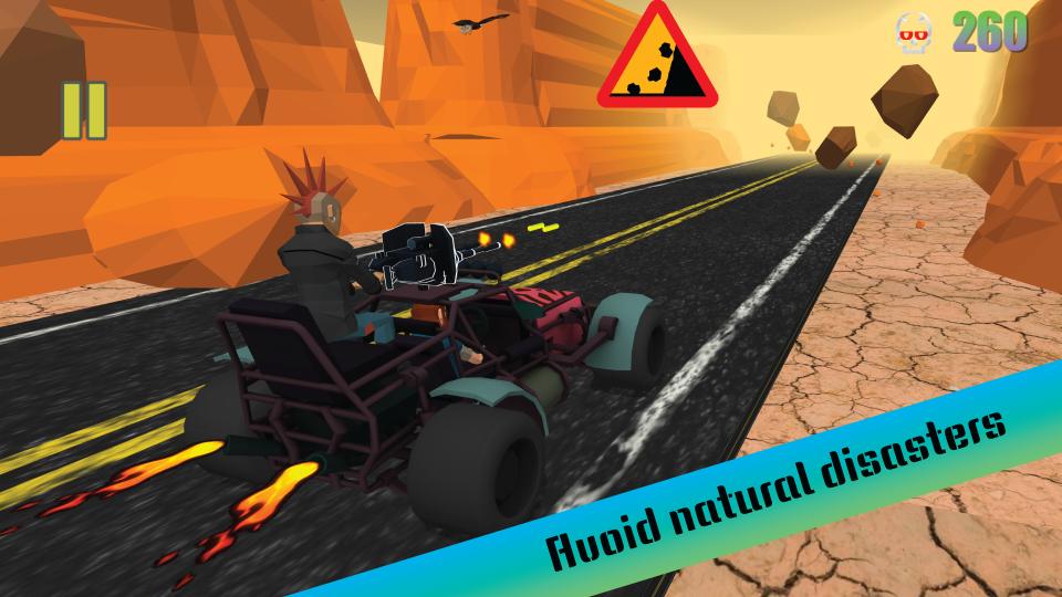 • Endless Car Runner Action: Drive, dodge, and shoot through infinite desert landscapes.