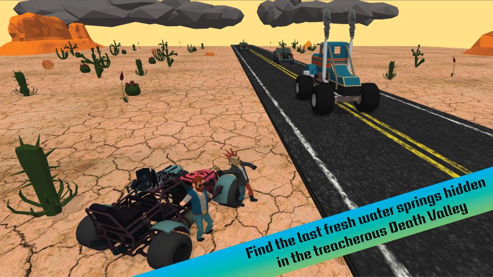 Beyond the thrilling car combat and endless pursuit, Death Valley tells a compelling story of humanity's fight for survival. Your quest to find the last fresh water springs is not just a personal journey but a mission to save what remains of civilization. The harsh realities of Earth 2056 are brought to life through environmental storytelling and challenging gameplay that reflects the desperation of a world without water. Can you overcome the dangers of the Death Valley and secure a future for mankind?